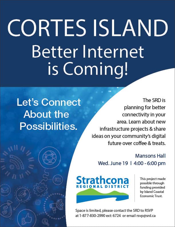 June 19 2019 — Cortes Island Broadband Community Plan Feedback? Next Event: Water-resilient gardening workshop for Area D residents Previous Event: Gold River Broadband Community Plan More Meetings & Events December 3 2025 Area D Advisory Planning Commission Meeting December 4 2025 Area C Advisory Planning Commission Meeting December 5 2025 Committee of the Whole Meeting December 10 2025 Electoral Area Services Committee Meeting December 10 2025 Strathcona Gardens Commission Meeting View More Meetings & Events