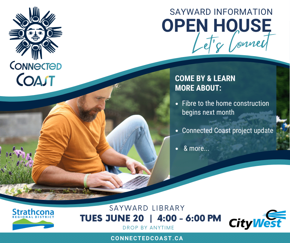 Project members from the Strathcona Regional District & CityWest will be on-site to answer any questions you may have. We look forward to seeing you. www.connectedcoast.ca