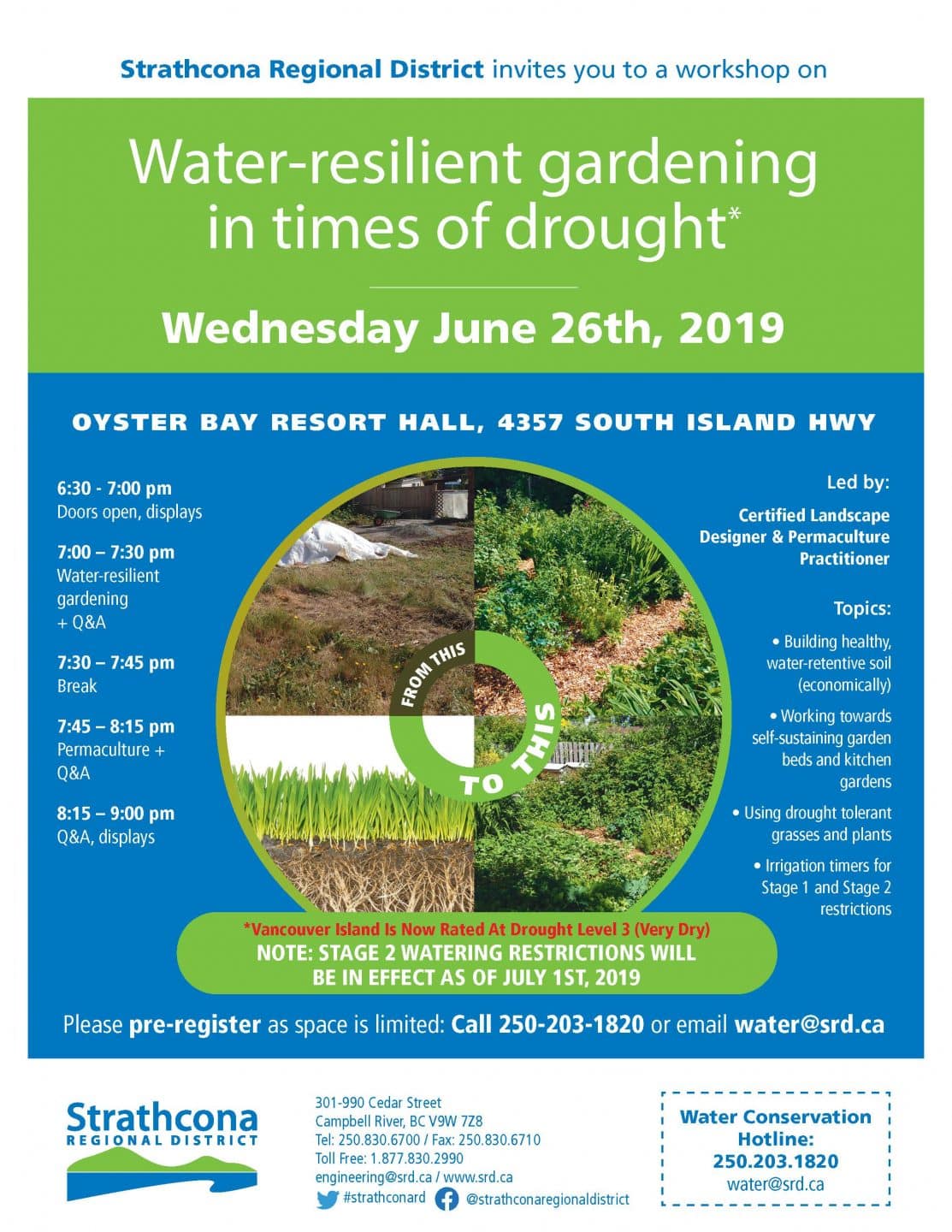 June 26 2019 — Water-resilient gardening workshop for Area D residents Feedback? Water Resilient Gardening Workshop Poster Next Event: NOTICE OF PUBLIC HEARINGS - Bylaw Nos. 355 & 356 Previous Event: Cortes Island Broadband Community Plan More Meetings & Events December 3 2025 Area D Advisory Planning Commission Meeting December 4 2025 Area C Advisory Planning Commission Meeting December 5 2025 Committee of the Whole Meeting December 10 2025 Electoral Area Services Committee Meeting December 10 2025 Strathcona Gardens Commission Meeting View More Meetings & Events