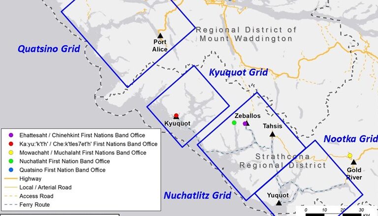 “These maps present the anticipated effects of a tsunami at high tide with an additional freeboard (safety factor) to capture the most probable worst-case scenarios from the Cascadia Subduction Zone and Alaska Aleutian Subduction Zone” said Strathcona Regional District Chair Brad Unger. “The Regional District’s next steps will be to host in-person public engagement sessions later this month in the Kyuquot and Nuchatlitz grids to discuss and educate the public about the impact of these maps on land use planning, conceptual mitigation options and evacuation considerations.”
