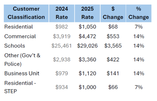 All six fee classifications will increase by approximately 19% in 2023 to prepare the service for necessary upgrades and future capital projects.